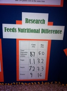 This proud mom will tell you the little tweep brought home a trophy (and a huge smile) – but that’s not what was important. It was about the effort and education. The little tweep was able to take something she loves, turn it into a learning opportunity and share it with others. When was the last time you’ve done that? The display was seen by hundreds at an open house – the cow (stuffed) was a magnet. Hopefully this provided a glimpse into the science of dairy cattle nutrition – and that it’s perfectly natural for cows to eat corn as part of a well-balanced diet. It’s amazing how few people understand that – even in a rural community.